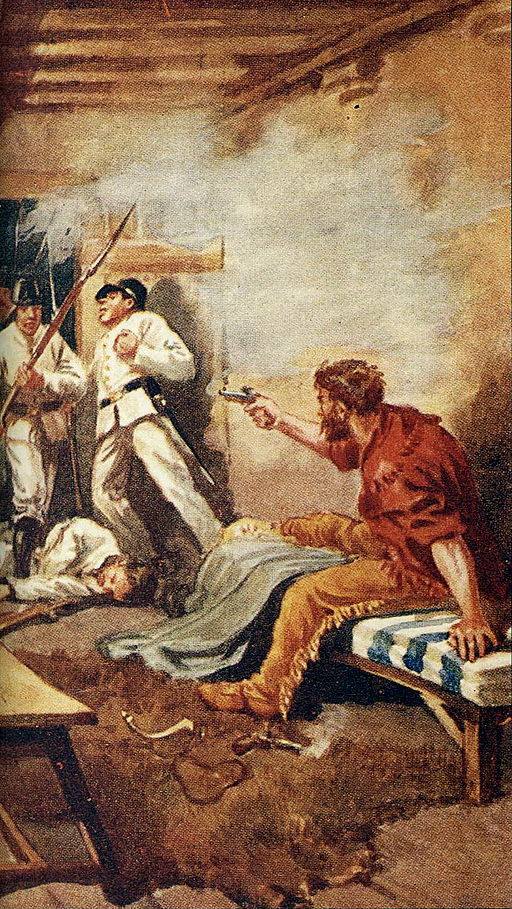 In February, 1836, the garrison at the Alamo, a Spanish mission near San Antonio, Texians led by 26-year old Colonel William B. Travis, James Bowie (originator of the famed “Bowie Knife”), Tennessean Davy Crockett and others, prepared to defend the mission. James Bowie had originally been ordered to the Alamo on January 19, 1836. He arrived with orders to destroy the complex. Instead, he took command of the garrison as its co-commander, along with Colonel William Barret Travis. Travis became the sole commander of the Alamo on February 24, 1836.